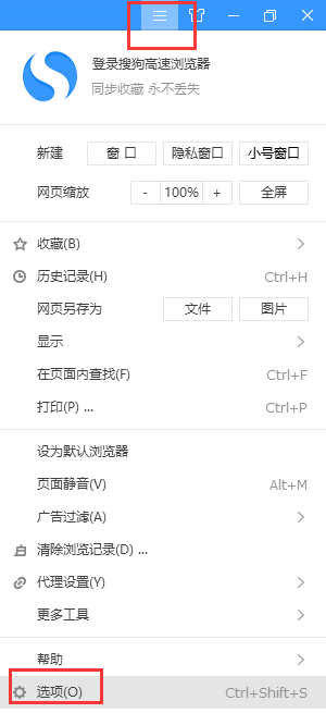 点击浏览器右上角【选项】按钮,点击【选项】。