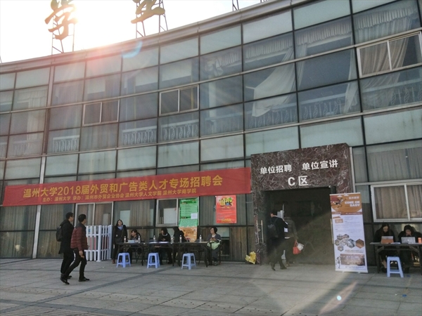 承办的温州大学2018届外贸和广告类人才专场招聘会在茶山高教园区大学生活动中心就业服务广场C厅举办。本次活动参加对象主要有各外贸企业、新闻广告企业(单位);温州大学英语、国际经济与贸易、广告学2018届毕业生及大二大三在校生。