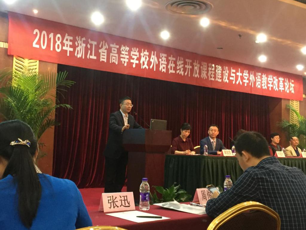 2018年浙江省高等学校外语在线开放课程建设与大学外语教学改革论坛于4月28日在浙江杭州举行。本次会议是为了推进外语在线开放课程的选题、课程设计,推动浙江省外语在线开放课程联盟的成立,分析2017年国家精品在线开放课程团队案例以及共享研讨本省在线开放课程建设选题与应用。会议由浙江省大学外语教学研究会和高等教育出版社有限公司联合承办。澳门六合彩官网 朱晓申副院长、张莲妹老师、蒋艾峰老师以及部分英语课程与教学论研究生参加了此次论坛。