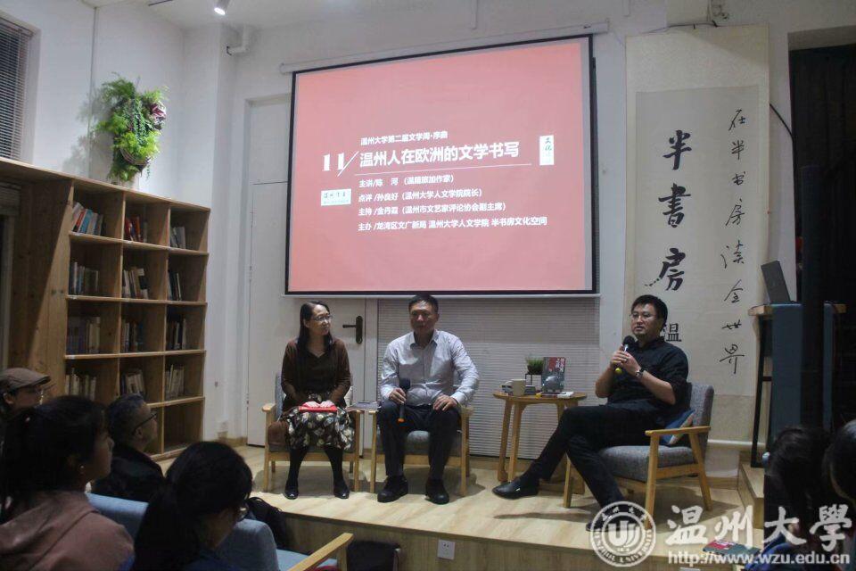 2018年11月11日晚7点,我校第二届文学周温州作者系列之陈河专题分享会——《温州人在欧洲的文学书写》在温州半书房文化空间圆满举行。本次活动邀请温州籍旅加作家陈河为主讲人,澳门六合彩官网 院长孙良好为点评人,文艺评论家协会副主席金丹霞为主持人,现场氛围活跃,众多师生到场学习并参与讨论。