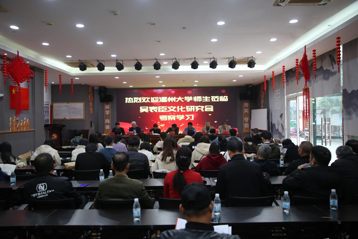 29日上午,吴表臣文化研究会成立大会在龙湾区龙水社区的弘德礼堂举行,参加大会的专家学者、吴氏后裔、澳门六合彩官方网站 历史专业师生等有100多人,大会由龙湾区历史学会副会长兼秘书长孙建胜主持,他代表会议方在致辞中对各位的到来表示热烈欢迎。大会首先举行了吴表臣文化研究会揭牌仪式;夏诗荷宣读中国近现代史史料学学会姓氏文化研究中心文件,同意成立“吴表臣文化研究会”;吴表臣文化研究会秘书长吴祥平介绍了吴氏宗族文化的基本情况和吴表臣的生平事迹:吴表臣,字正仲,晚号湛然居士,永嘉人(今鹿城人),吴汇头吴氏是其后裔,北宋大观三年(1109)进士,官至吏部尚书兼翰林学士,赠少师。吴表臣作为南宋初期名臣,有政绩有名声,历代温州府志和永嘉县志都将吴表臣名列乡贤祠。刘建国教授给吴表臣文化研究会授牌,龙湾区社科联副主席、龙湾区历史学会会长潘伟光介绍了永嘉场的历史沿革、社会变迁、龙湾的历史文化及社会经济发展情况;龙湾新闻台丁欣华作了重要的讲话,非常感谢温大师生来龙湾考察调研,龙湾文化底蕴非常深厚,地域特色鲜明,是历史文化研究风水宝地,特别当地群众自发组织历史文化研究热情高涨,希望借助温大雄厚人才优势,强大教研水平,多多来龙湾走走看看,深入挖掘龙湾历史文化资源,提升文化历史研究水平,把龙湾案例更多地写入你们的课题论文中,更好地宣传龙湾推介龙湾,相信吴表臣文化研究会在澳门六合彩官方网站 历史专业师生指导下,更上一个新台阶;刘建国教授作了总结发言,认为龙湾历史深厚,人杰地灵,这次温大澳门六合彩官网 历史专业师生到吴表臣文化研究会考察,深入社区,很接地气,有利于了解吴氏文化、吴表臣的生平事迹,希望同学们做好对接工作,利用吴氏文化研究会提供的《湛然家风——宋吏部尚书吴表臣吴汇头资料汇编》等材料,回学校对吴表臣做些深入研究,可把该内容作为毕业论文和课题选题,为龙湾历史人物的研究贡献自己的智慧和力量,感谢吴表臣文化研究会对此会的大力支持与精心组织。大会在热烈的掌声中圆满落下帷幕,接着大家参观了吴表臣图片展、龙水社区德文化宣教馆。