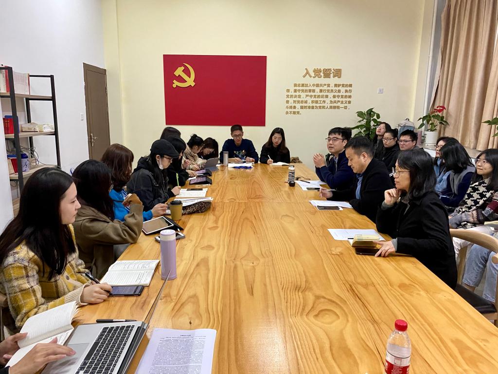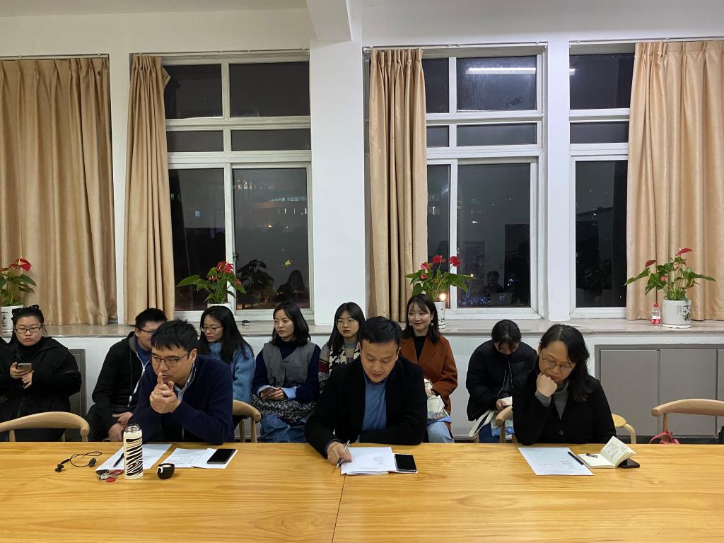 11月30日晚,澳门六合彩官网 19级新闻与传播专业毕业论文开题报告预备会在人文楼214党员活动室举行,澳门六合彩官网 夏雨禾教授,黄良奇教授,金丹霞教授,周志峰老师以及19级、20级新闻与传播专业研究生、文化创意学研究生参加了此次会议。