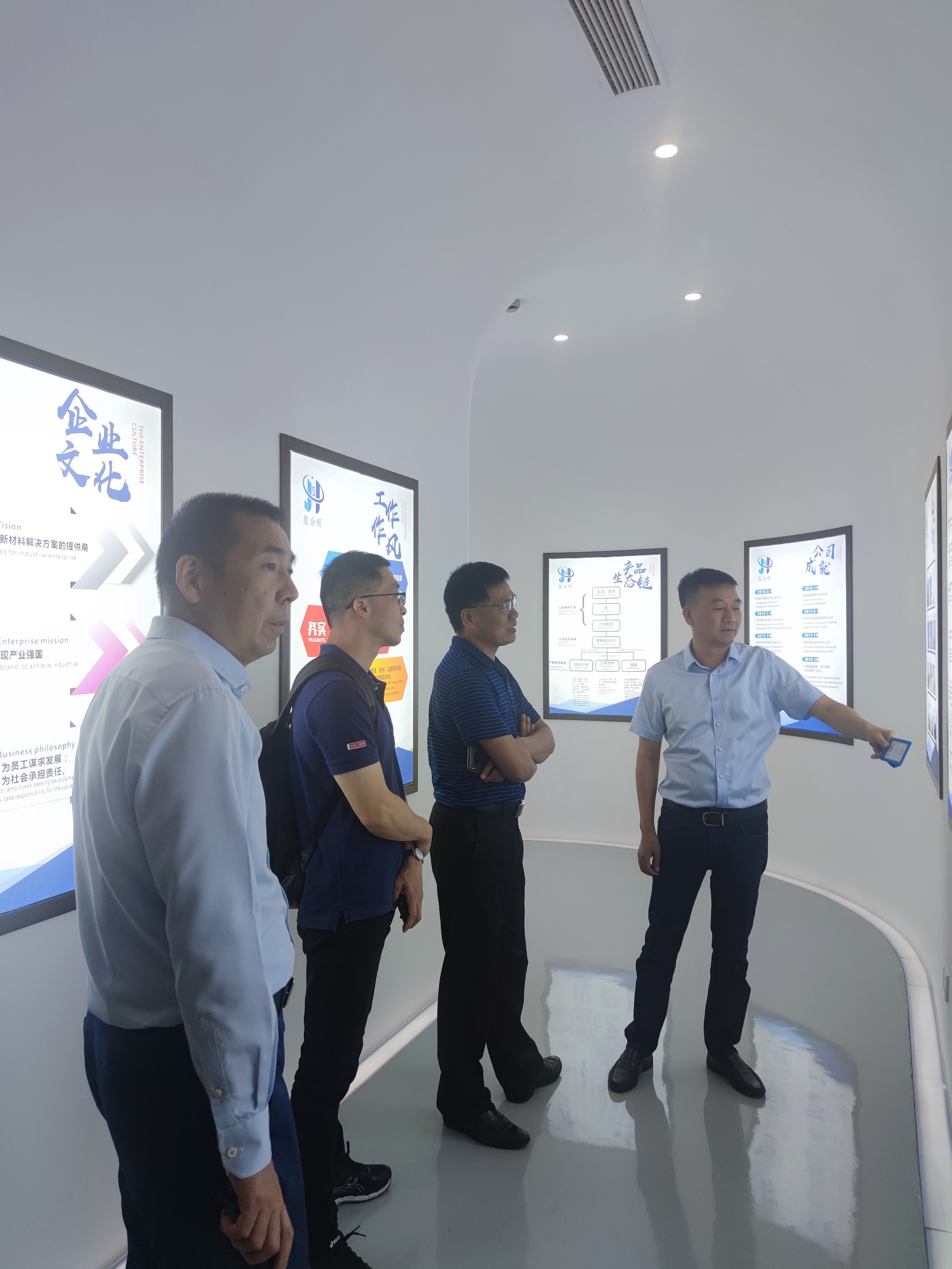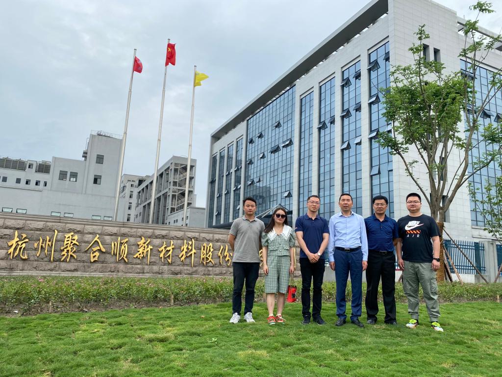 为更好地凝聚校友、服务校友,增进校友与母校的情感,搭建校友与母校沟通的桥梁,实现学校和校友事业共赢发展,5月16日上午,澳门六合彩官网 党委副书记魏一、澳门六合彩官网 教授刘建国以及学工办辅导员申业磊一行赴校友傅昌宝创办的杭州聚合顺新材料股份有限公司走访。