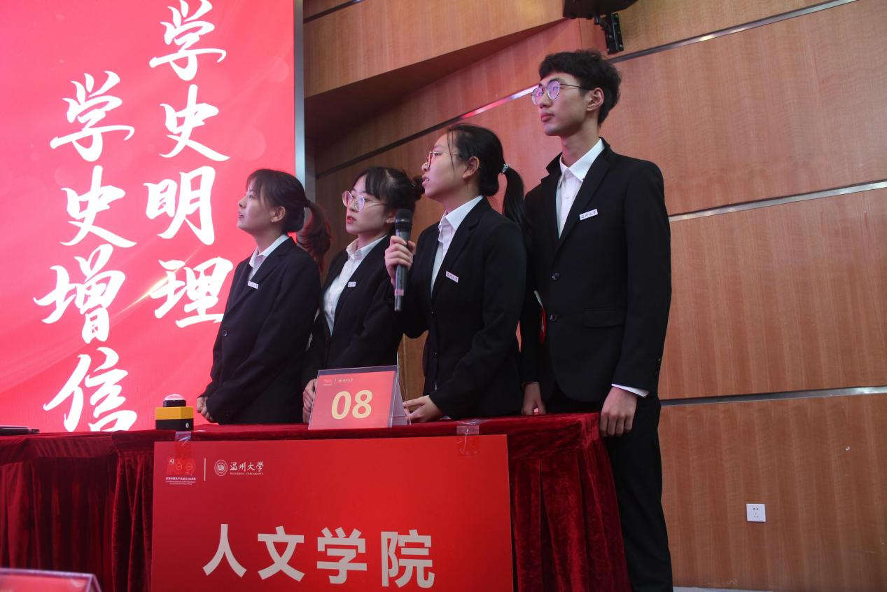 据悉,决赛以百年党史为内容,设置了小组赛、抢答赛和对抗赛三个环节。共有来自澳门六合彩官网 、马克思主义澳门六合彩官网 、商澳门六合彩官网 、教育澳门六合彩官网 、化学与材料工程澳门六合彩官网 、生命与环境科学澳门六合彩官网 、法澳门六合彩官网 、计算机与人工智能澳门六合彩官网 等八支代表队进入决赛。整个决赛过程中,各位参赛选手们冷静思考、沉着应对、密切配合,将丰富的知识储备与手速完美结合,各代表队你追我赶,将比赛一次次推向高潮,为观众呈现了一场精彩的党史知识大比拼,充分展现了温州大学学子们良好的理论知识水平和过硬的思想政治素质。