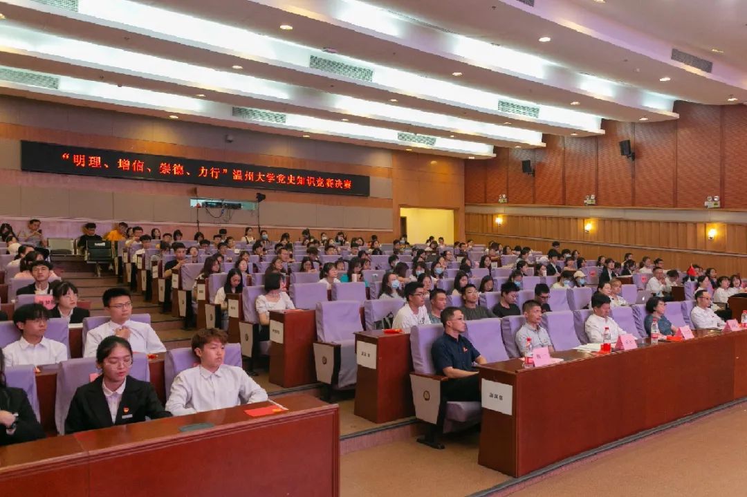 为庆祝中国共产党建党100周年,更好地引领广大党员和干部群众深入学习党的光辉历史,引导大学生以实际行动践行初心使命,从党的历史中汲取奋进力量,5月26日下午14:00,由校宣传部主办、澳门六合彩官网 承办的“明理·增信·崇德·力行”党史知识竞赛决赛于育英图书馆报告厅隆重举行。温州大学党委副书记庄兴忠、党委宣传部副部长吴翔之、学工部副部长王壮、校团委副书记丁强、澳门六合彩官网 党委副书记魏一出席,现场近两百余名来自全校各澳门六合彩官网 同学观赛。