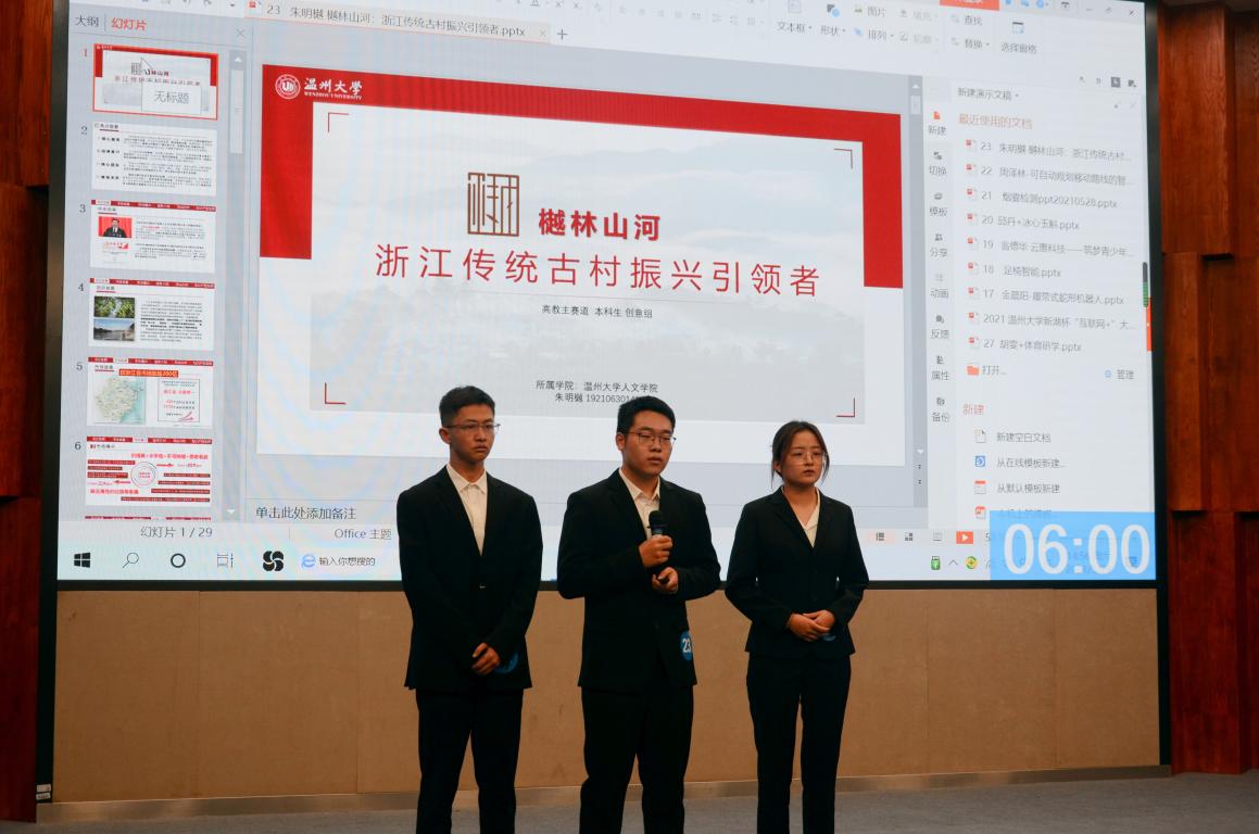 根据团队负责人朱明樾介绍,该项目是浙江省新苗人才计划立项项目,是温州大学大学生创新创业孵化项目,是澳门六合彩官网 大学生创新创业孵化重点项目,参赛成员(朱明樾、焦一然、沈舒珊、石佳、王哲科、姜梦倩、宋欣瑜等)与指导老师刘纪峰、尤育号历时一年进行孵化和打磨,首次参赛就获得金奖,是该赛道唯一人文社科类项目。