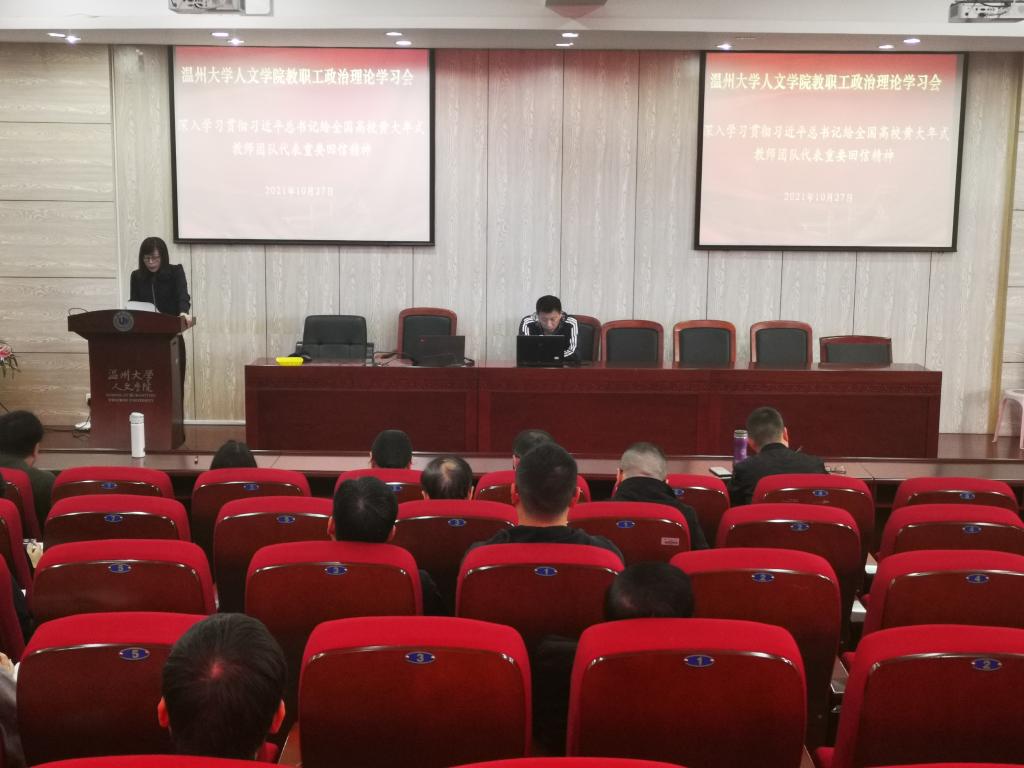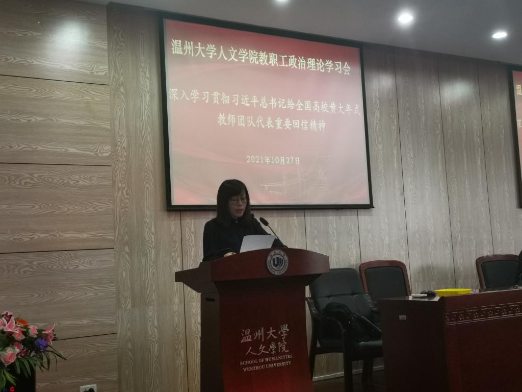 为认真贯彻落实习近平总书记给全国高校黄大年式教师团队代表重要回信精神,深入学习弘扬黄大年同志的爱国情怀和敬业精神,澳门六合彩官网 于10月27日下午在203报告厅召开全院教职工政治理论专题学习会。澳门六合彩官网 全体教职工参加本次会议,会议由澳门六合彩官网 党委书记吴静主持。