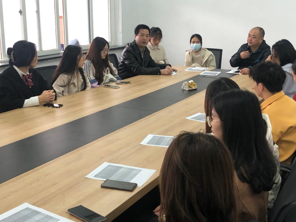 下午,温十二中初一语文教研组组长吴春平老师带领四位语文老师与见习生们见面。见习生分别认识并与各自的导师进行简单的交流、安排听(上)课工作。