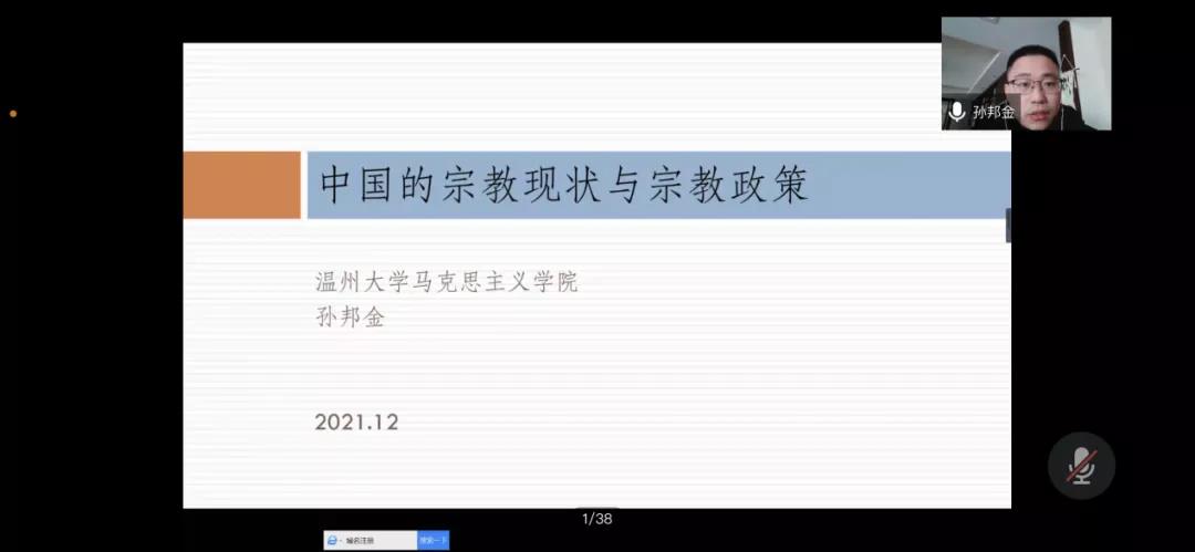 第二讲主题为“马克思主义宗教观与反邪教”,本专题由温州大学马克思主义澳门六合彩官网 副院长孙邦金老师主讲。孙老师首先就目前我国宗教情况与历史渊源向我们介绍了党的宗教工作基本方针与国家宗教管理的基本原则。随后,分别讲述了马克思主义宗教观的哲学基础,基本内容和马克思主义宗教观的中国化。最后,老师着重强调宗教问题无小事,尊重宗教信仰自由的同时要准确识别、远离邪教,提高自身防范能力。