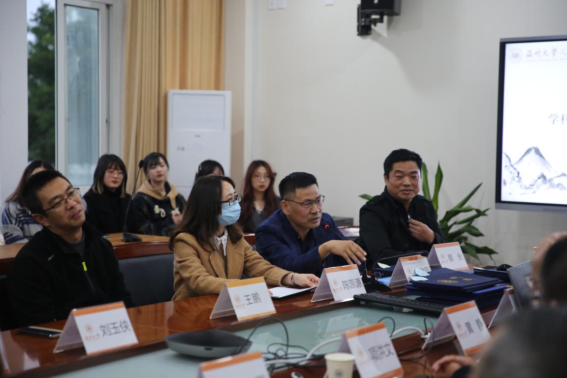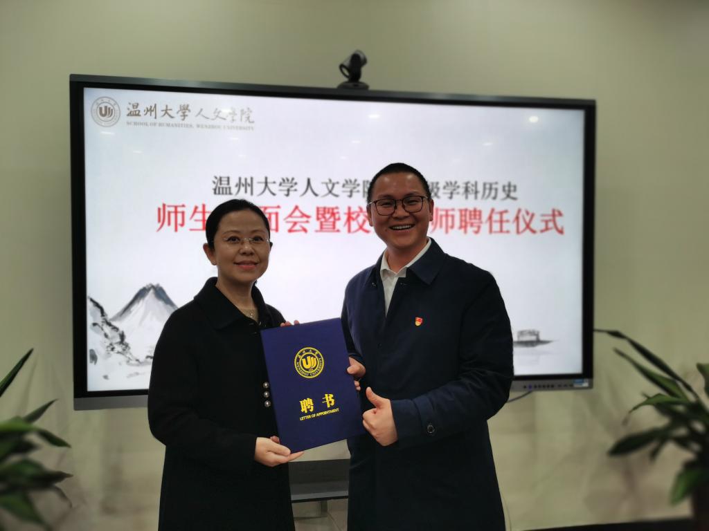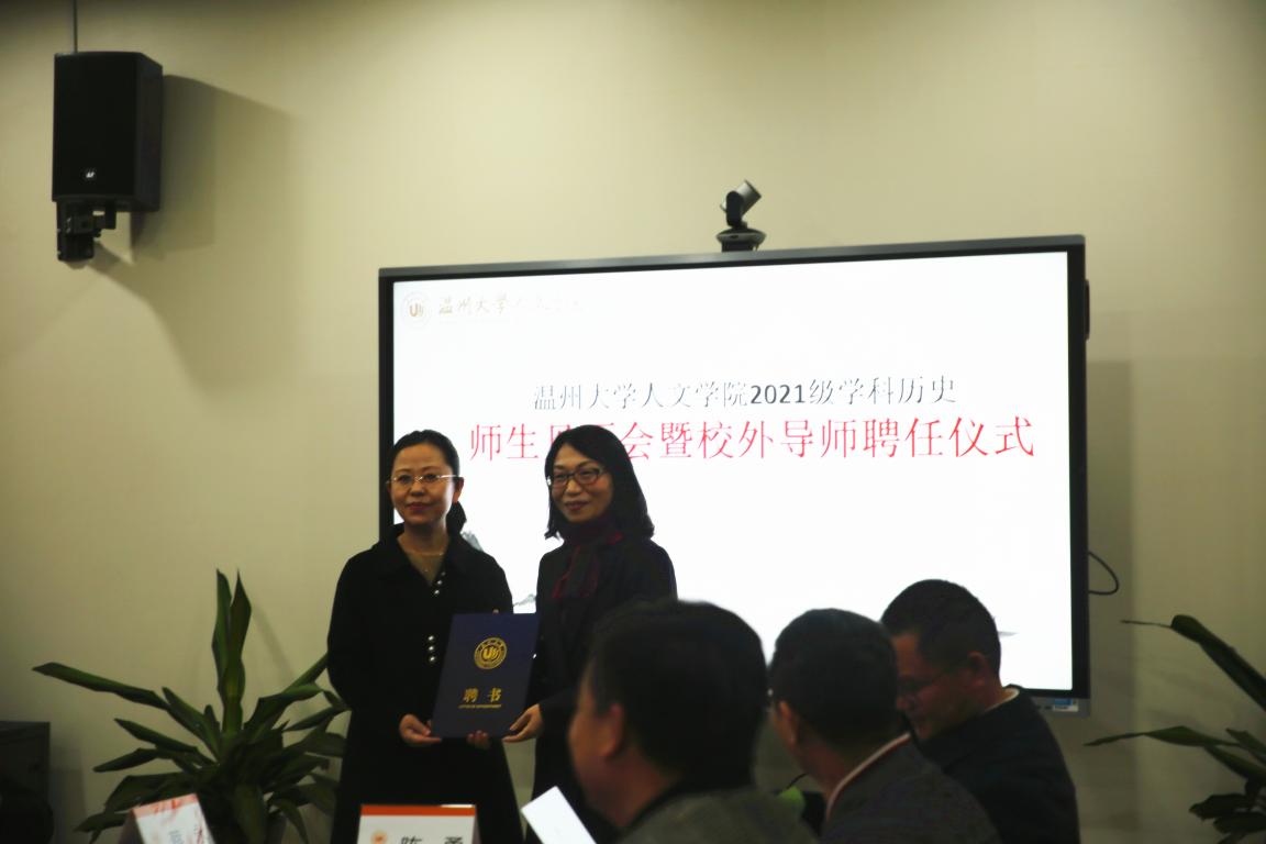 2021年12月8日下午,澳门六合彩官网 2021级学科教学(历史)师生见面会暨校外导师聘任仪式在人文楼213会议室如期举行。出席此次聘任仪式的嘉宾有温州大学研究生院院长刘玉侠教授、研究生院院长助理王鹏博士、澳门六合彩官网 副院长陈源源教授、副院长郑春生教授、学科教学(历史)硕士点负责人刘建国教授、历史系系主任尤育号教授,以及陈安金、蒋金崇、王兴文教授等校内导师,与黄静、徐乃赛、夏陈伟、蔡永、项洪文、章晖、郑小侠、肖云豹等校外导师。2021级学科教学(历史)的硕士研究生们也踊跃参加了此次见面会。
