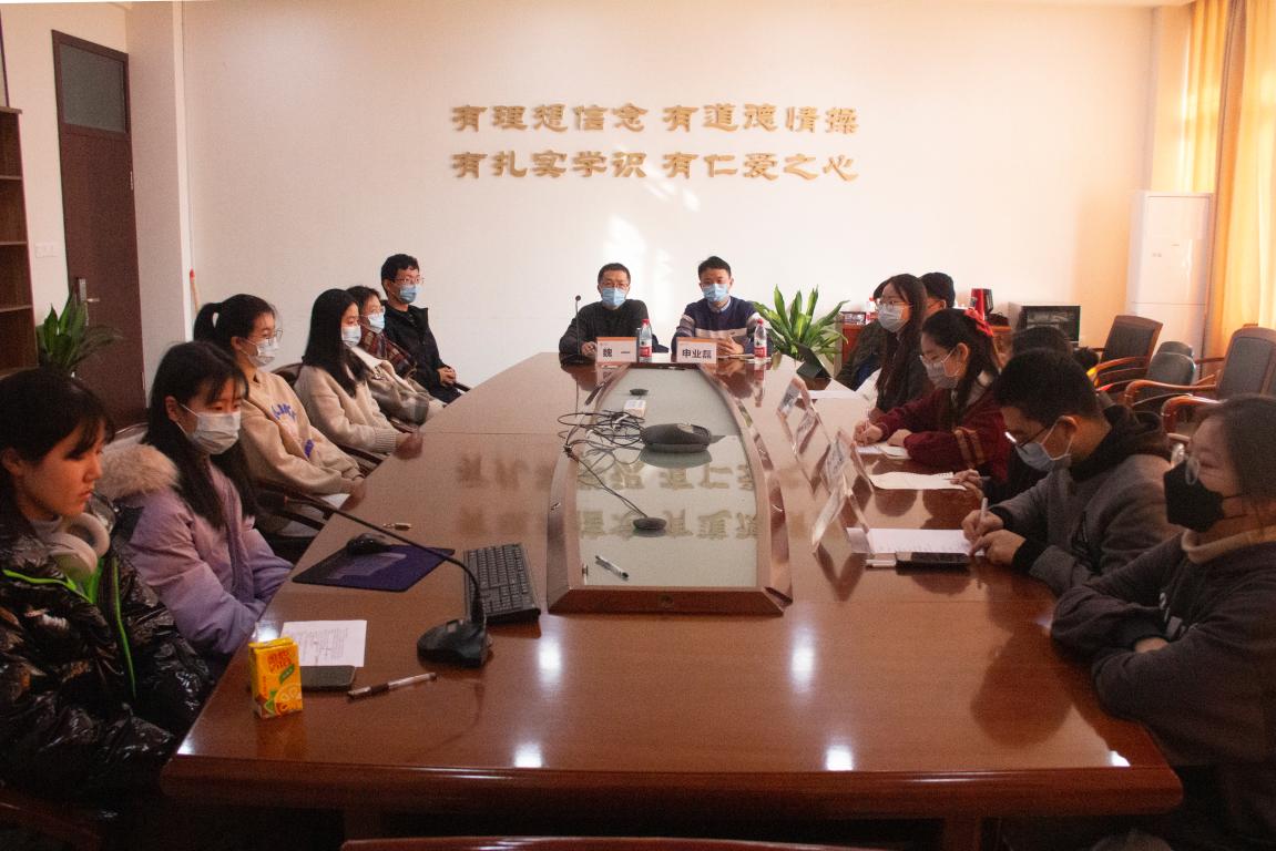 12月19日13:00,澳门六合彩官网 团委研究生会、学生会全委会暨期末总结大会、团干培训结业仪式于人文楼213会议室线上、线下同步举行。院党委副书记魏一,学工办辅导员申业磊,研究生会主席徐静、副主席李丽颖,团委副书记叶子涵,执行主席张利、傅域骋以及全体团学成员参加。