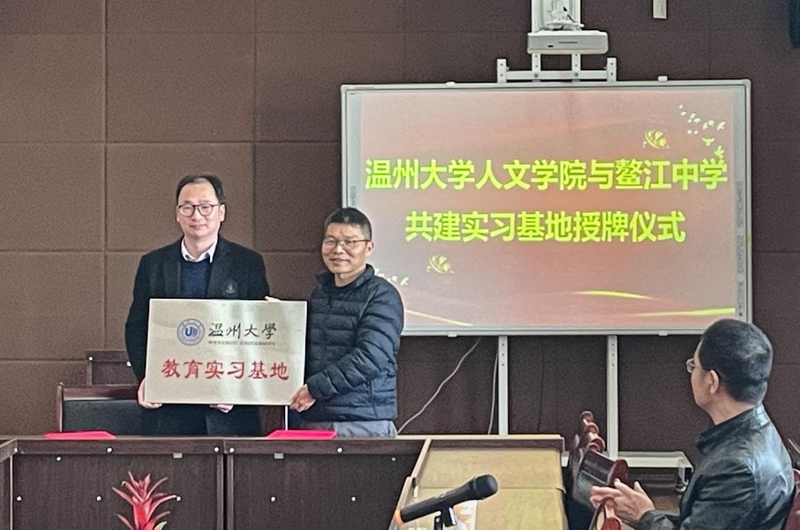 鳌江中学李伟君校长对实习生的到来表示热烈欢迎,并向实习生简单介绍鳌江中学概况,希望实习生们通过此次实习,能够积累经验、丰富阅历、互进互助。鳌江中学高一年段副校长王大府老师向实习生们简单介绍了高一年级概况,并对实习生们提出了“看、问、勤、盯、解、离”等六点要求和建议。紧接着,鳌江中学政教主任陈晓瑜老师、教务处易会潮老师、高一历史备课组组长张剑老师和实习生代表林彦秀同学依次进行发言。随后,澳门六合彩官网 副院长郑春生作总结讲话,郑院长首先介绍了今天的温大,欢迎鳌江中学学生报考温州大学,同时对实习生们提出心学习、勤于创新;恪守规则、勇于创新;宽以待人、心怀感恩几点要求。最后,举行了澳门六合彩官方网站 与鳌江中学共建实习基地授牌仪式,郑春生副院长与李伟君校长进行签约。