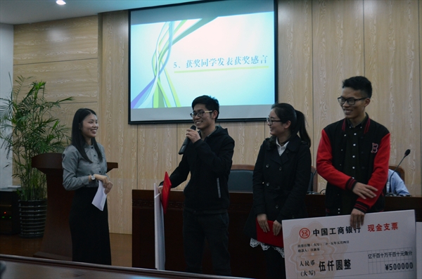 最后,好望角公司季晓飞总经理宣布了获奖名单,共有6名同学获得了5000元奖金,他们分别是李益碧、李雅婷、汪新东、赵莎莎、顾晨娴、陈强。拿着大张的支票,获奖者们都难以掩饰喜悦和感激之情,对广告学专业的老师、同学,对澳门六合彩官网