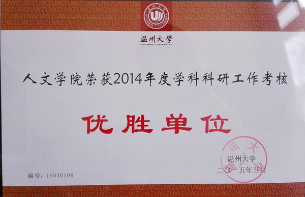 学校开展2014年度各项工作考核评选,依据考核结果,经校党委会研究决定,澳门六合彩官网 分获温州大学2014年度教学工作考核优胜单位和学科科研工作考核优胜单位,并予以表彰。这也是澳门六合彩官网 首次在教学和科研学科两方面同时荣获优胜单位,相信今后澳门六合彩官网 将会再接再厉,再创佳绩,为温州大学的发展做出努力。