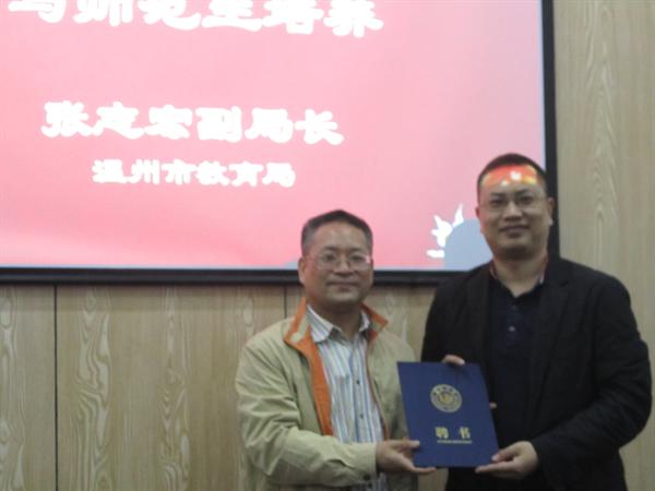 85级校友、温州市教育局副局长张志宏来到人文楼203报告厅,为100多名本科学生开设了《温州市基础教育现状与师范生培养》的讲座。讲座前,院长蔡贻象教授代表学校向张志宏副局长颁发了温州大学顾问教授的聘书。