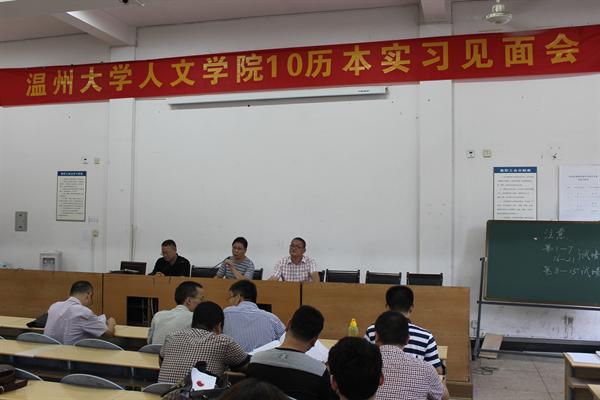 10历本(师范)38名同学来到瑞安市飞云镇中学,开始了为期6周的教育实习。下午4点,教育实习见面会在飞云镇中学会议室举行。飞云镇中学校长诸葛建欣,副校长金程、相关部门负责人、实习指导老师,澳门六合彩官网