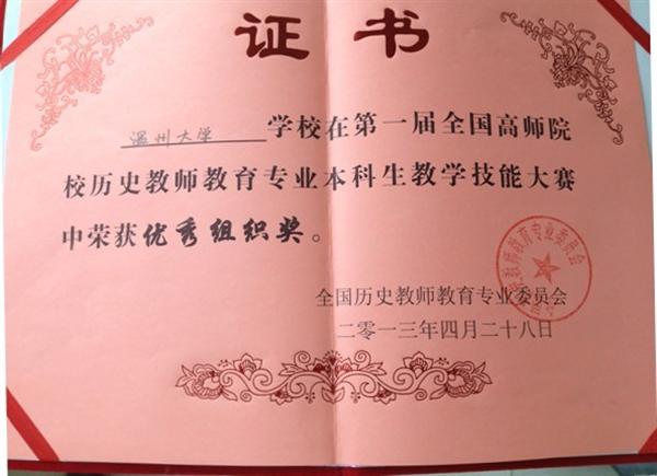 澳门六合彩官网 一贯重视对历史师范生教学技能的培养,不断探索新的人才培养模式,认识到合格中学教师的培养,既离不开扎实的专业知识,更离不开娴熟的教学技能。澳门六合彩官网 通过教学改革,强化师范技能培养,突出实践教学,聘请温州教学名师加强对师范生的指导,充分利用学校微格教学实验平台,搭建师范生教学技能训练平台,激发学生的从教的热情,从而涌现出一批优秀的师范生,在全国、省师范生技能大赛等重要比赛中屡获佳绩。