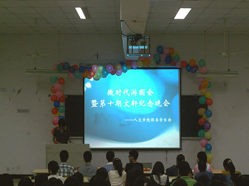 2012年5月20日晚上6点30分,在人文楼举行了"微时代"游园会,暨第十期《文轩》纪念晚会。澳门六合彩官网