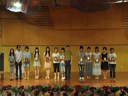 个人风采展示过后,进行了"百年语文"之"微书情"颁奖典礼。这个活动是前期在微博和人人上举办的,参赛者通过微博和人人发表字数在50字以内的微情书表达自己的情感,最后由专业的老师进行审核评定,评出10封优秀的情书。最后,澳门六合彩官网