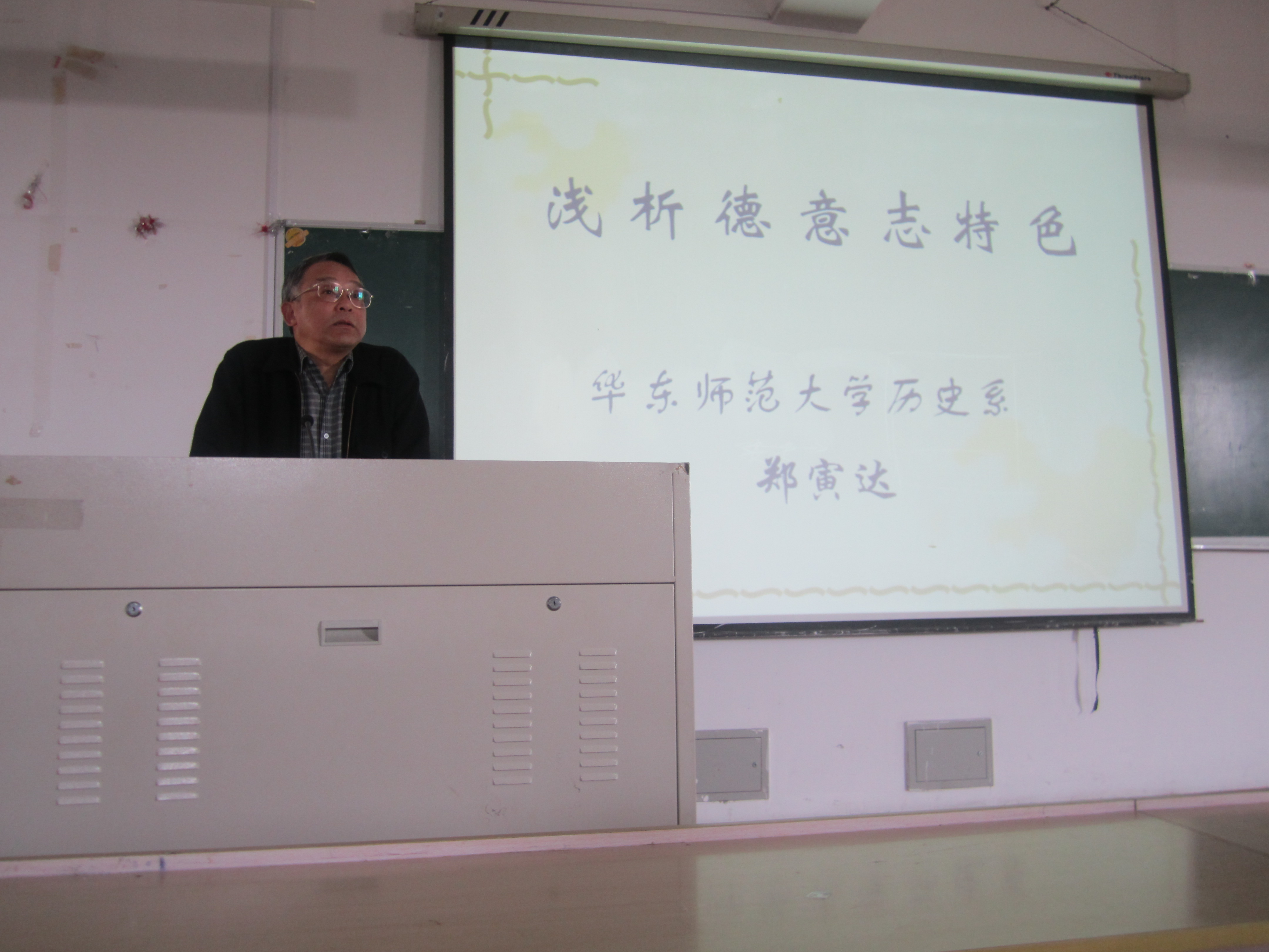 3月28日下午2:00,郑寅达教授面向澳门六合彩官网 全体学生的学术讲座“浅析德意志特色”,蔡瑞霞和郑春生老师也前来聆听。郑老师从很时尚的“真的很德国”广告语入手,循循善诱地分析着德意志的特色及德国历史上的分治与统一问题。郑老师用幽默风趣的语言和“真的很德国”的理性思维方式让我们重新认识了德国的历史和德意志的特性。不知不觉中,三个小时过去了,而同学仍围着郑老师问各种各样的问题,而郑老师则仍不厌其烦地答疑解惑。