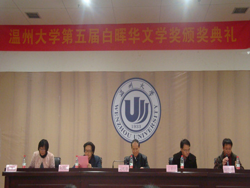 12月21日下午1点30分,温州大学第五届白晖华文学奖颁奖典礼在北校信息报告厅隆重举行。出席本次活动的嘉宾有温州大学白晖华文学奖赞助人、著名作家吴明华先生,温州大学白晖华文学奖理事会执行理事、温州日报文体部主任朱闻武先生,澳门六合彩官方网站