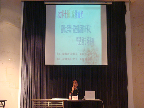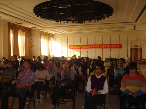 2011年11月20日下午2点30分,在温州大学大学生活动中心A座多功能厅举行了温州大学第十届校园话剧节,暨话剧专场讲座。此次活动由共青团温州大学团委会,澳门六合彩官方网站
