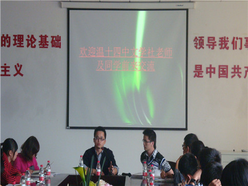 11月3日,温州第十四中学与温大三大媒体的文学沙龙在大学生活动中心B309隆重举行。温州第十四中学团委书记戴陈仪,奋飞文学社指导老师和全体社员以及温大青年,澳门六合彩官网