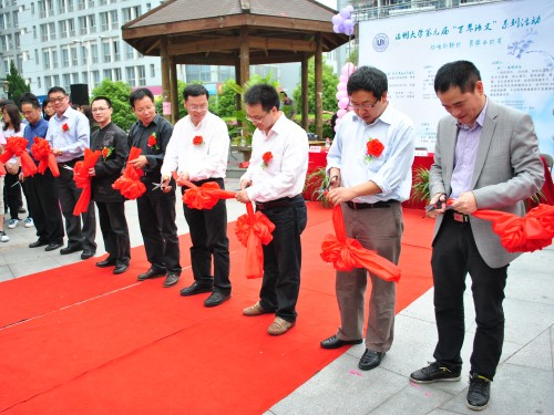 2011年4月27日下午,四月的阳光穿透历史的脉络,为我们带来一丝传统文化浓郁的芬芳。“文化长廊暨百年语文开幕式”在温大生活C区中心花园隆重展开。