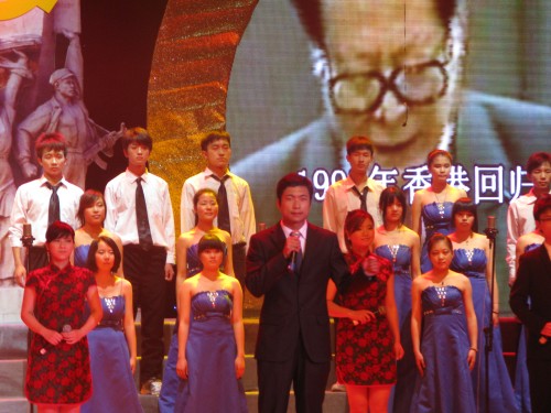 党总支副书记骆锤炼老师等全校师生代表共同演绎原创诗朗诵《党建纪元逾九十 歌颂党史唱温大》,令全场激情澎湃、荡气回肠,晚会达到高潮。大会在全场起立齐唱校歌的庄严氛围中,将爱党荣校的精神“润物细无声”深植入了全体温大人的心中。在上周三上演的庆祝建党九十周年诗歌朗诵大赛中,《我的祖国》获得群诵组第二名的好成绩,同时也荣获了“优秀创作奖”奖项。