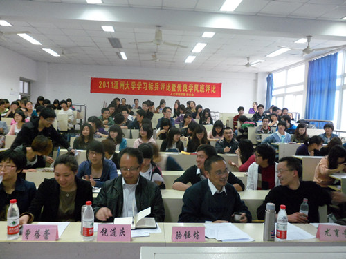 2011年4月22日15点30分,温州大学学习标兵评比暨优良学风班评比活动于人文楼202教室举行。出席该活动的有澳门六合彩官网