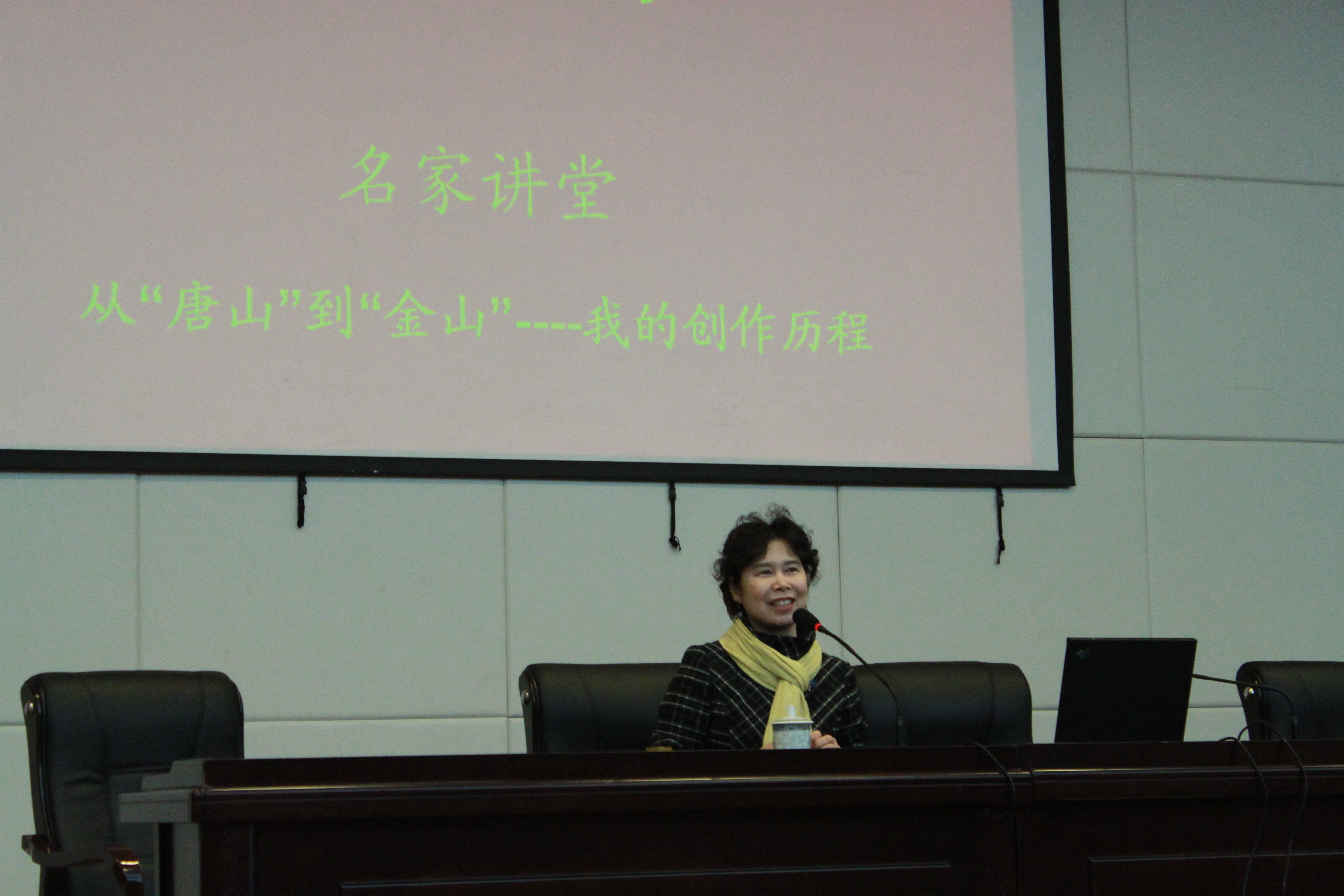 在一个半小时的讲座中,张翎女士首先结合自己的人生经历谈了文学梦的开始和延续,接着以自己创作的《余震》为引子,讲述小说创作的灵感来源、案头资料的搜集以及原作与电影《唐山大地震》的区别。在讲述自己近年力作《金山》的创作历程时,她展示了大量晚清至民国时期漂洋过海的“淘金人”及其他海外华人的生活和工作的珍贵历史图片。真实丰富的资料图片加上作家生动风趣的亲切解说,引发了一波又一波高潮,同学们被深深地吸引。在互动阶段,同学们踊跃提问,就具体的作品和中西文化差异等问题与张翎女士展开坦诚交流。最后,张翎女士借用英国著名女作家弗吉尼亚·伍尔芙“一年五百英镑的收入和一间自己的屋子”的说法对追寻文学梦的同学提出真诚的建议:一个人不要凭空做梦,要在现实条件许可下做梦,而且这个梦必须是自己真心喜欢的。