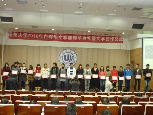 团委、学生会承办。出席本次活动的嘉宾有白晖华文学奖赞助人、著名作家吴明华先生,温州大学副校长叶世祥教授,白晖华文学奖理事会执行理事、温州日报文体部主任朱闻武先生、澳门六合彩官方网站