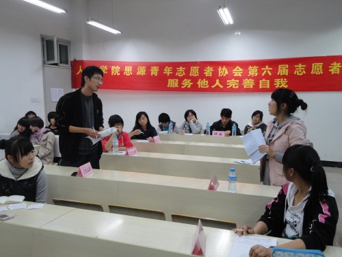 2010年11月15日晚18:30,人文思源青年志愿者协会在人文楼207教室顺利举办了第六届志愿者干部培训第二课之辩论赛决赛。在预赛中脱颖而出的16位青年志愿者展开激烈角逐。