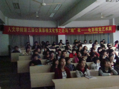 《山楂树之恋》作为本年度国产电影力作,在之前的“最受大学生欢迎影片投票”中拥有极高的人气。这部影片向大家讲述了一个文革期间纯净的、唯美而又感伤的爱情故事,真实再现了属于那个年代特有的浪漫。剧情的进展也在带动着台下同学们的情绪,同学们时而欢笑时而唏嘘。最后本次影片展播在同学们的意犹未尽中落下了帷幕。