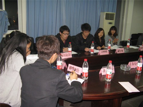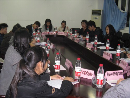 学生会副主席相孝锟主持,主要商讨即将举行的温州大学第九届校园话剧节及相关事宜。