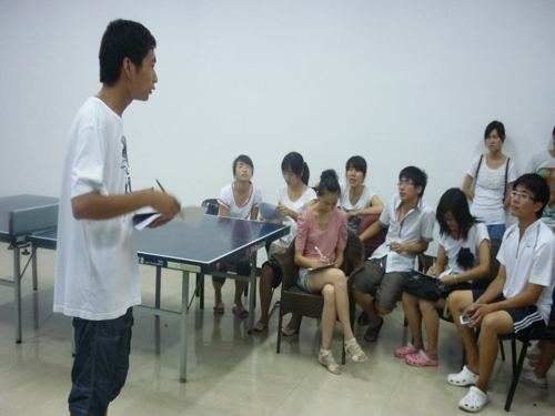 首先,麻老师向大家介绍了下学期的一些工作方向和内容。包括网络信息化建设、话剧节等校园品牌活动、学习研究型学生会建设、学生干部队伍建设、新一期的招新工作等,并布置了暑假任务。而后,学生会主席陈辉补充说明几点,包括优秀学生会评比、学生会的民主化建设等。会后,召开了部长会议重点讨论优秀学生会评比事宜。