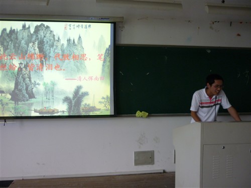 2010年6月3日下午,在人文楼201教室“第一团队杯”温州大学第八届百年语文系列活动之鹿鸣讲坛(学习型)坛主08中本三班张佳峰同学开设了一场题为“中国艺术生命精神和性灵寄托为题研究”的讲座。