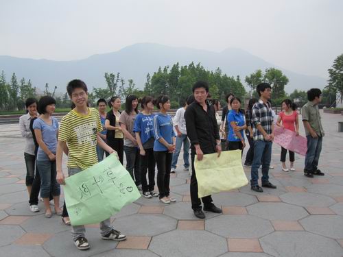 5月19日下午,07中本二班团日活动之户外素质拓展在大学生活动中心喷泉广场举行。