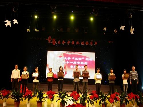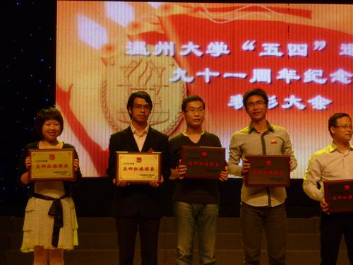 5月7日晚上,温州大学“五•四”运动九十一周年纪念表彰大会在大学生活动中心演艺厅隆重举行。校党委副书记牟德刚、校团委及各澳门六合彩官网