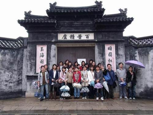 孙诒让先生是我国近代著名的一代经师,被誉为“有清三百年朴学之殿”,著有《周礼正义》《墨子间诂》等名著。同学们首先兴致勃勃地参观了孙先生的藏书楼--玉海楼,它是清代江南著名私家藏书楼之一。这里古朴典雅、书香幽幽。当看到3万册藏书井然有序地保存在那里,大家都是惊叹不已。随后,同学们来到西院的孙诒让故居,并参观了小院 “百晋陶斋”,那里则是主人收藏金石碑帖的地方。真正体会到了中国传统文化的博大精深。