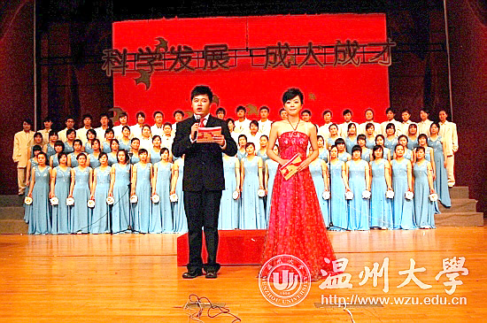 4月15日18:30,“科学发展•成人成才”温州大学第十七届校园文化节开幕式暨纪念五•四运动九十周年大合唱比赛在大学生活动中心演艺厅浓情上演。本次活动由温州大学党委宣传部,温州大学工会,温州大学团委主办,温州大学大学生艺术团承办。校领导陈福生、周湘浙、任柏强、赵敏及学校有关部门、澳门六合彩官网