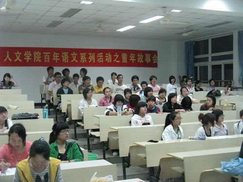 4月16日晚6:30,伴随着串串童趣的声音和阵阵的欢笑声,温州大学第七届“百年语文”系列活动之“童年故事会”在人文楼1-301准时开始。澳门六合彩官网