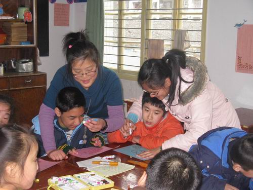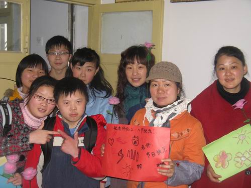 下午,志愿者们带着活动必备的工具准时到达了新码道小学,根据事先的分组,活动顺利进行。每两名志愿者协助老师在一个班里开展活动。虽然那里的孩子由于智障,无法与志愿者们进行正常的交流,但是在志愿者手把手的教他们画贺卡写祝福语后,他们也逐渐变得兴奋起来。当他们的父母看到这些贺卡时,也显得十分的开心。接着,进行了赠贺卡赠花束活动,学生们将自己亲手制作的贺卡及志愿者带来的花束一起送给老师,向老师表达自己的感激之情,活动在欢声笑语中结束。