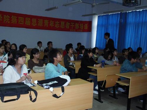 2008年11月9日,澳门六合彩官方网站 “思源”志愿者干部培训第四课在澳门六合彩官网 举行。此次活动由温州大学“绿色论坛”委员会的部长赵方毅担任主讲人。活动分为室外和室内两部分,以素质拓展培训为主要形式。