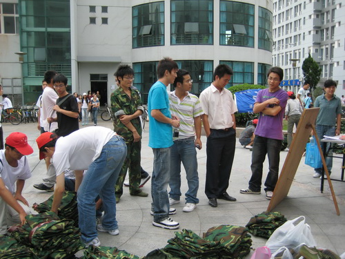 2008年9月28日,人文思源青年志愿者协会组织大一新生开展了一次捐赠军服活动。
