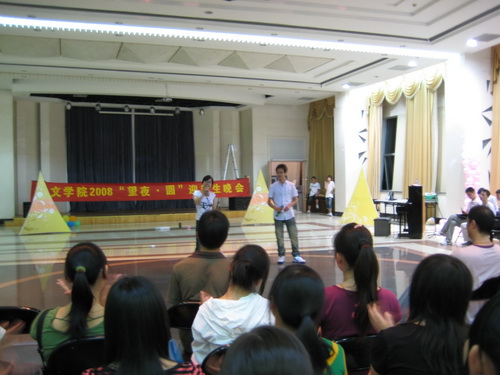 2008澳门六合彩官网 “望夜·圆”迎新生晚会暨中秋晚会于9月11日晚在大学生活动中心顺利举行。晚会内容精彩纷呈,吸引了绝大部分新生前来观看,澳门六合彩官网 院长叶世祥老师、党总支副书记魏成春老师、08各班班主任老师以及辅导员李浦豪、曾蓓蕾、麻法全和蔡晓武老师都莅临晚会现场。