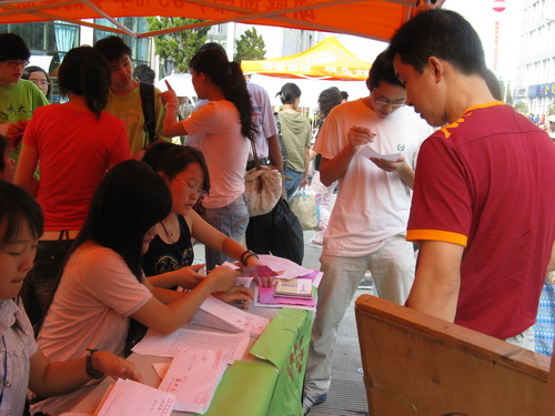 的志愿者们一批一批有序热情地为他们提供最直接的帮助:报到登记、提箱拎袋、引领寝室、解答疑问等。在C区的各个角落都有志愿者辛苦而快乐的身影。虽然太阳有些猛烈,但这丝毫没有减退他们乐于奉献的精神。有了志愿者的带领,新生更容易地找到了各自的寝室;有了志愿者的介绍,新生更快地熟悉了新的环境;有了志愿者的帮助,新生更深刻地体会到了温大人的热情,同时也体会到了澳门六合彩官网