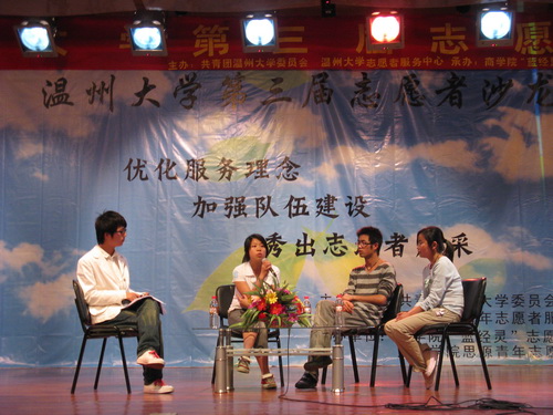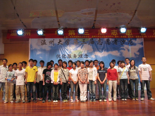 2008年5月16日晚,温州大学第三届志愿者沙龙在北校音乐厅成功举办。