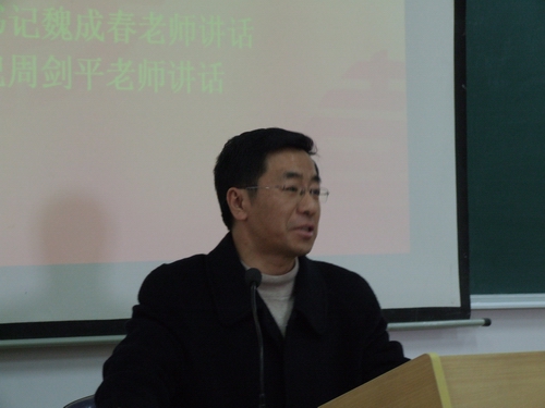 党委副书记魏成春发言,对5月份我校迎来的本科教学评估做了一个详细具体的分析。教学评估不但是对学校的一次大考验,更是对我们每一位温大学子的考核。评估成绩的优劣不但关系到学校名誉的好坏,更是关系到我校教学质量的高低,因此,全体教工和学生都要做好充分准备,以积极的态度迎接评估。学生不但要抓好成绩,各项技能,还要搞好寝室卫生和纪律。