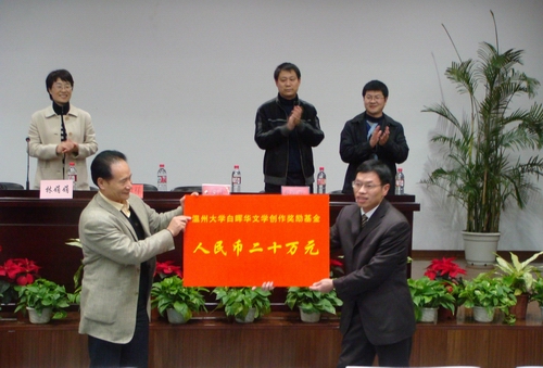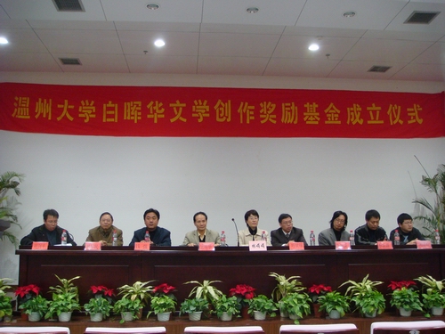 2007年12月19日下午,温州大学白晖华文学创作奖励基金成立仪式在北校区信息楼报告厅隆重举行。